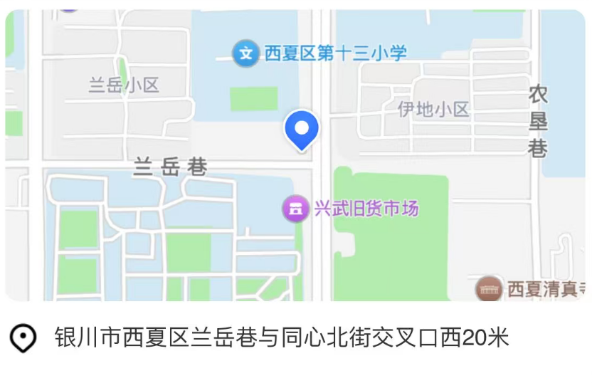 位置:银川市西夏区兰岳巷与同心北街交叉口西20米